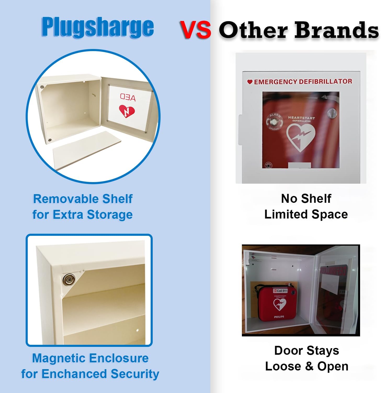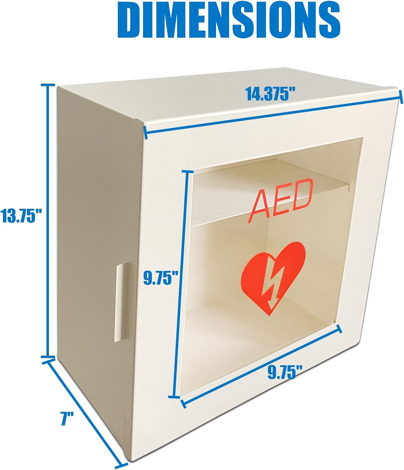 COMPATIBLE WITH MOST AED MODELS: At a size of 14.5″ (H) x 7″ (W) x 13.75” (H), this AED wall cabinet is crafted to accommodate the majority of emergency defibrillators. The spacious plexiglass window on the cabinet ensures quick and easy visibility of the contents, both at a glance and during urgent situations.