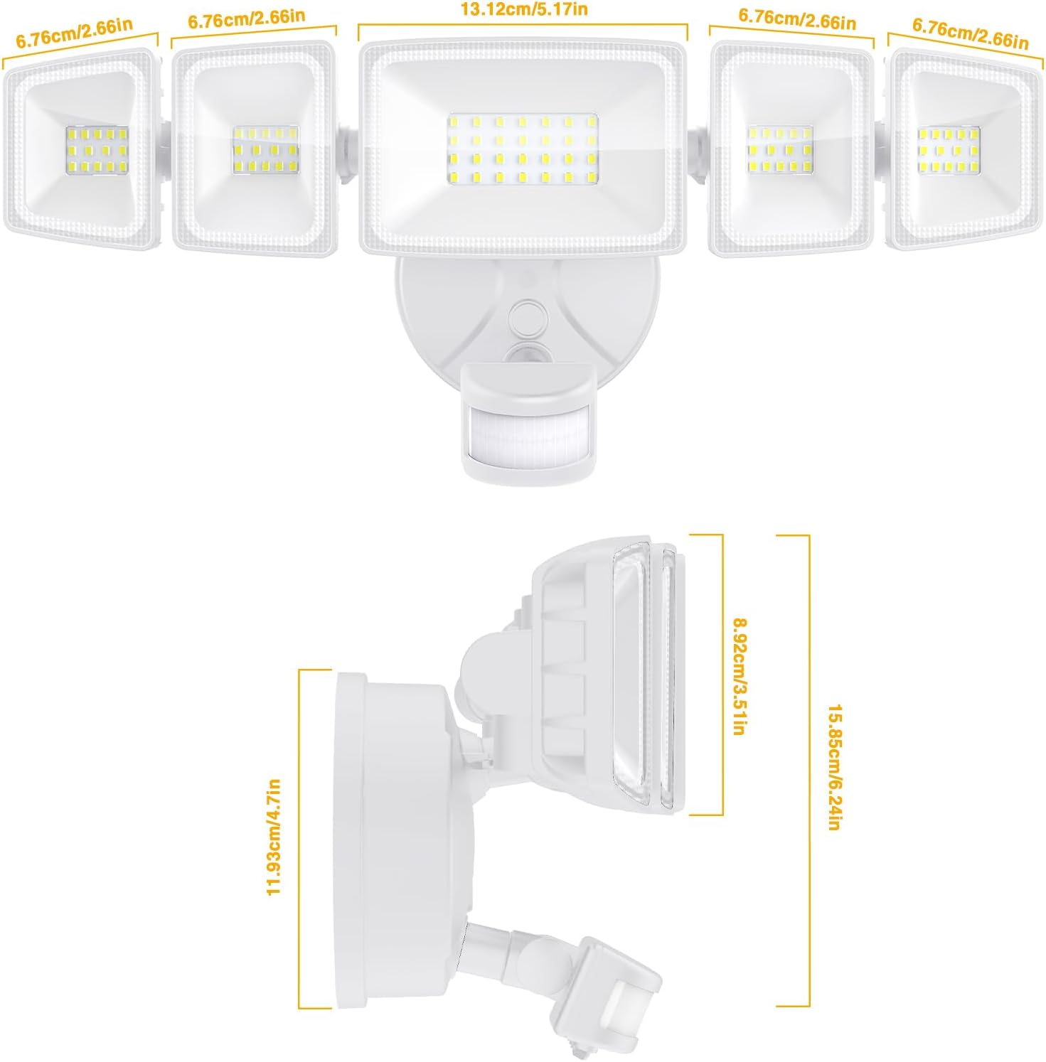 High Efficiency & Energy Saving: Featuring state-of-the-art LED technology, these security lights deliver a bright, 5000 LM that illuminates your space with ease; Not only do these security lights provide optimal lighting, but they also offer incredible energy savings