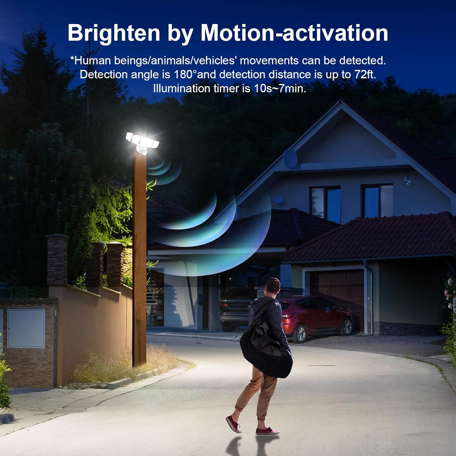 Motion Activated: This outdoor security light is equipped with the most popular PIR tech-motion detection activated mode; The built-in motion sensor detects movement withing a wide range, ensuring that your space is always well-lit when you need it