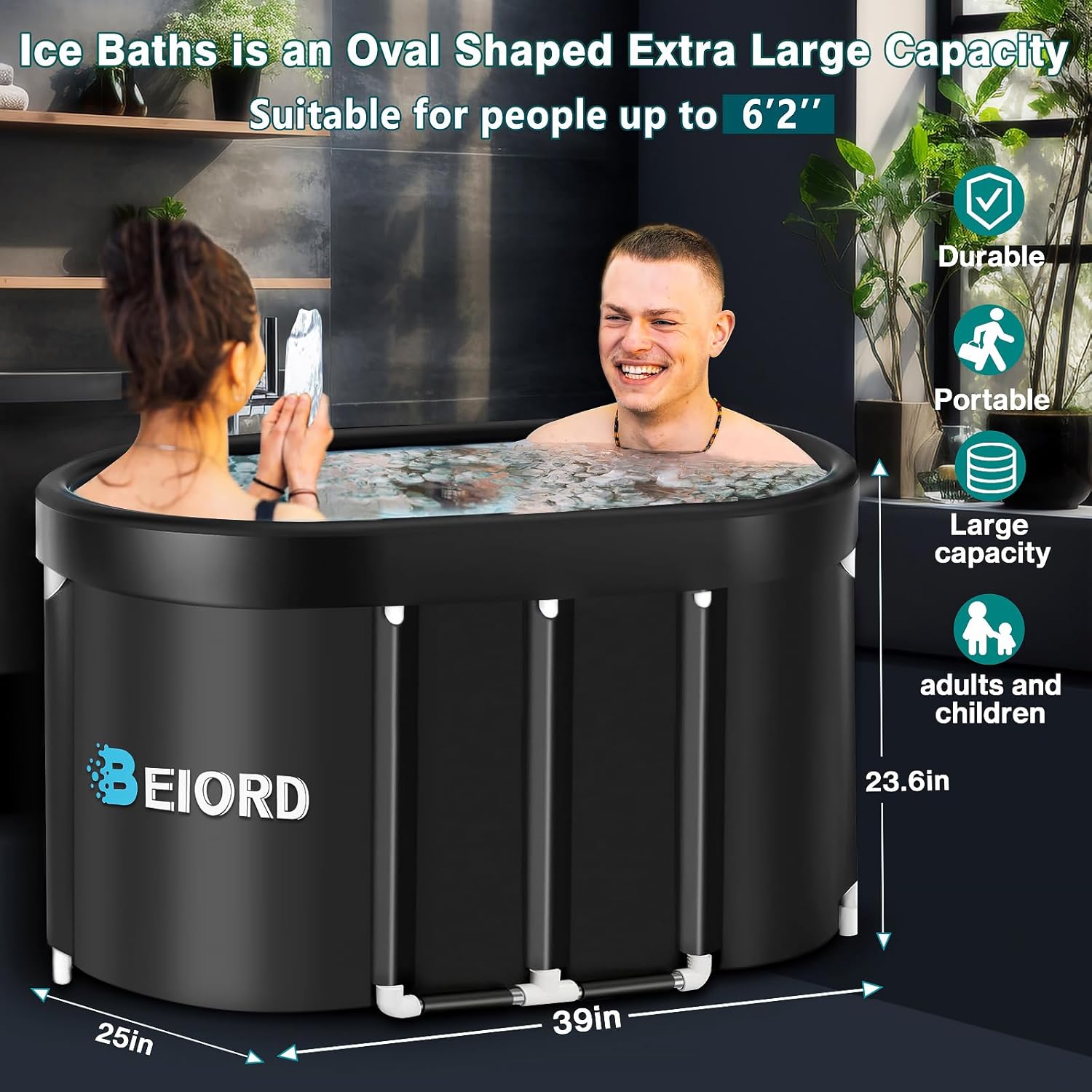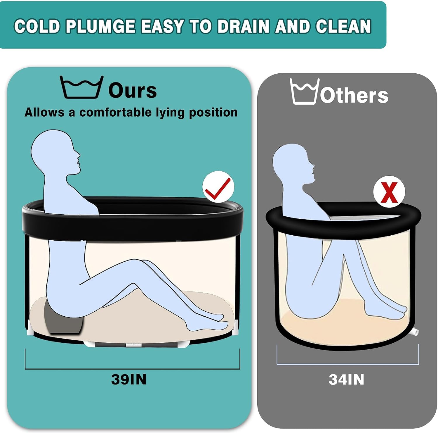 【Ice Baths is an Oval Shaped Extra Large Capacity】The oval ice barh has a very large capacity and allows you to place your legs freely without having to crouch down. The oval polar pod is more comfortable and spacious than the traditional round ice tubes for body, and the cold plunge tub is 1,000 millimeters (more than 3 feet) long, so that you can enjoy a refreshing treat with your family.