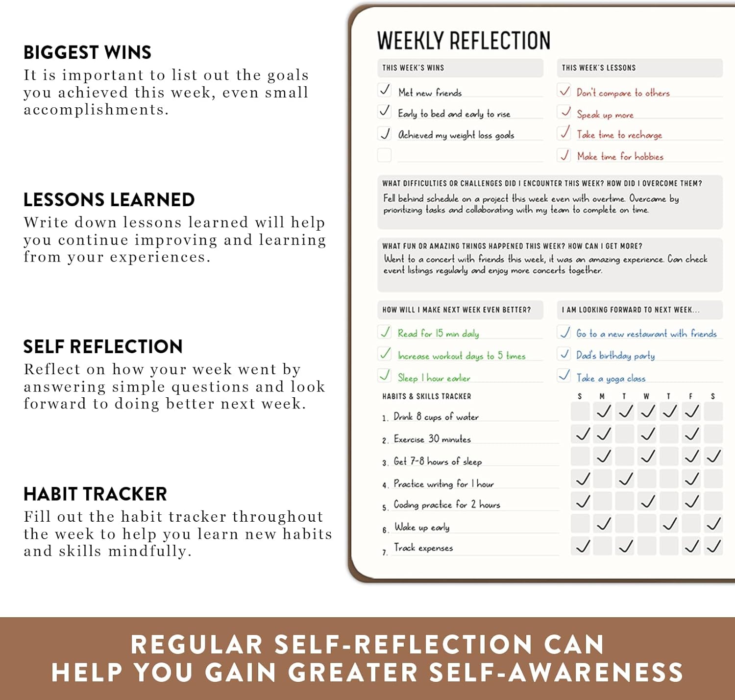 🎯 DESIGN & QUALITY: We designed this undated productivity planner for practicality, with curated materials & handpicked colors, the premium no-bleed, no-ghost and bend resistant paper & highest quality binding. It lasts for 12 months includes weekly reflection that you can write down the goals you achieved this week, and this week lessons. Reflect on how your week went and look forward to doing better next week. And including habit tracker, weekly inspirational quotes. We wanted our product to
