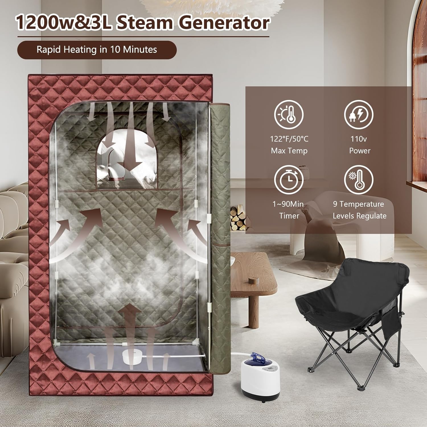 Be the first to review “Portable Steam Sauna for Home Spa, Full Size Personal Sauna for Relaxation at Home, Sauna Tent Sauna Box with 3L Steamer, Remote Control, Large Size Folding Chair (Brown)”