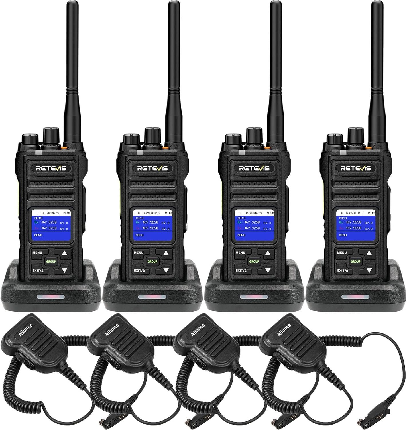 A rechargeable walkie talkie with 17 hours of work time and 120 hours of standby time effectively supports a whole day of work use. The equipped Type-C charging and desktop charging extend the use time of two way radio for longer use at work.