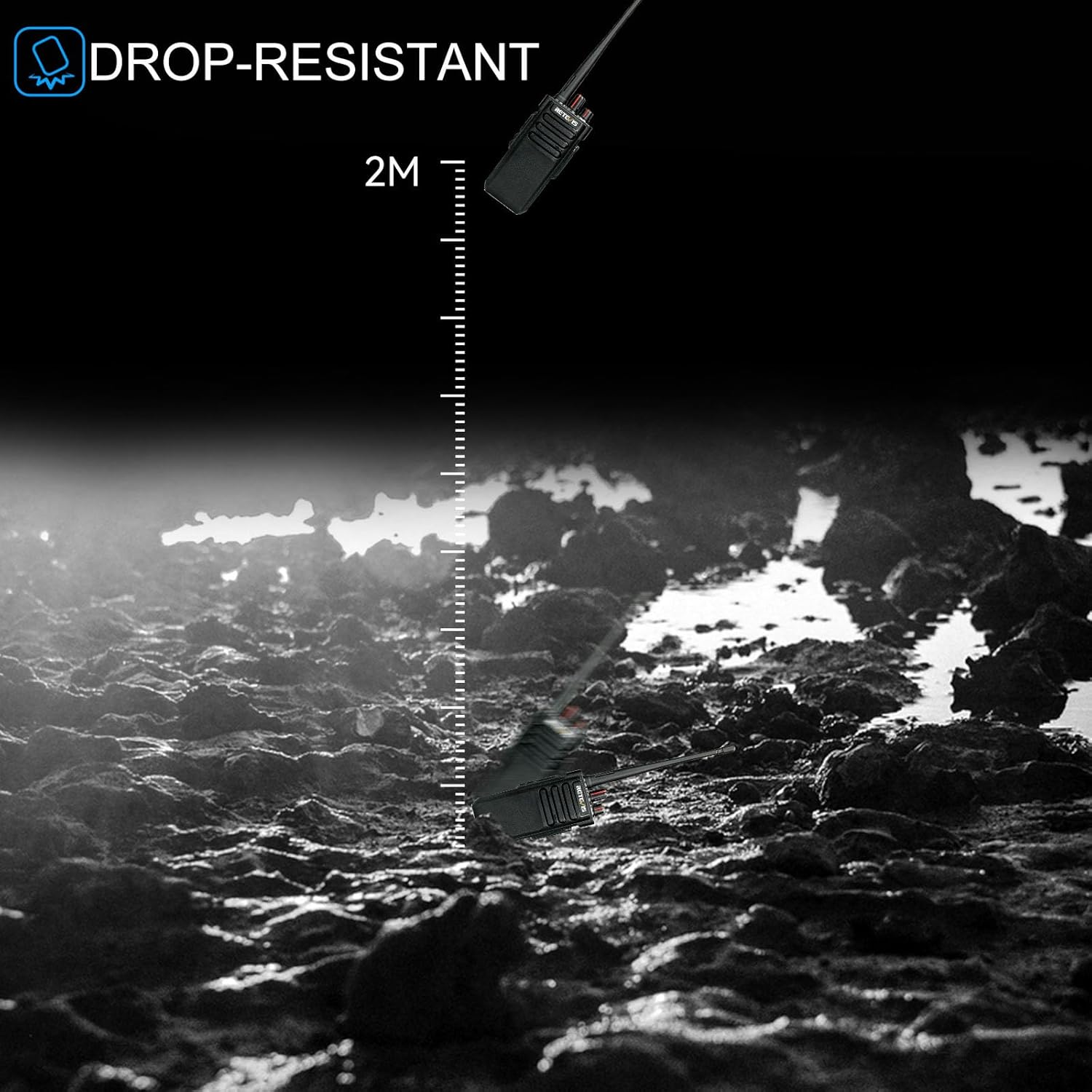 Rugged two way radios; with dust-proof and drop-proof design; can withstand shock and vibration in harsh environments plus 2-meter drop; provides longer two way radio service life