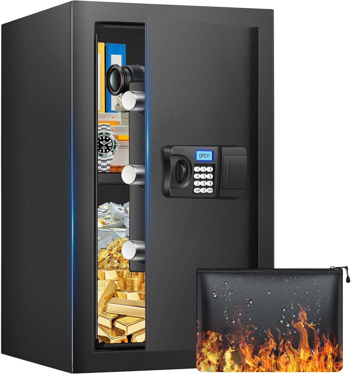 Be the first to review “Safe Box, 3.0 Cuft Home Safe with Fireproof Waterproof Bag, Anti-Theft Digital Security Safe Box with Smart Alert System, Removable Shelf, Mute Function, Personal Document Safe Box for Money Jewelry”