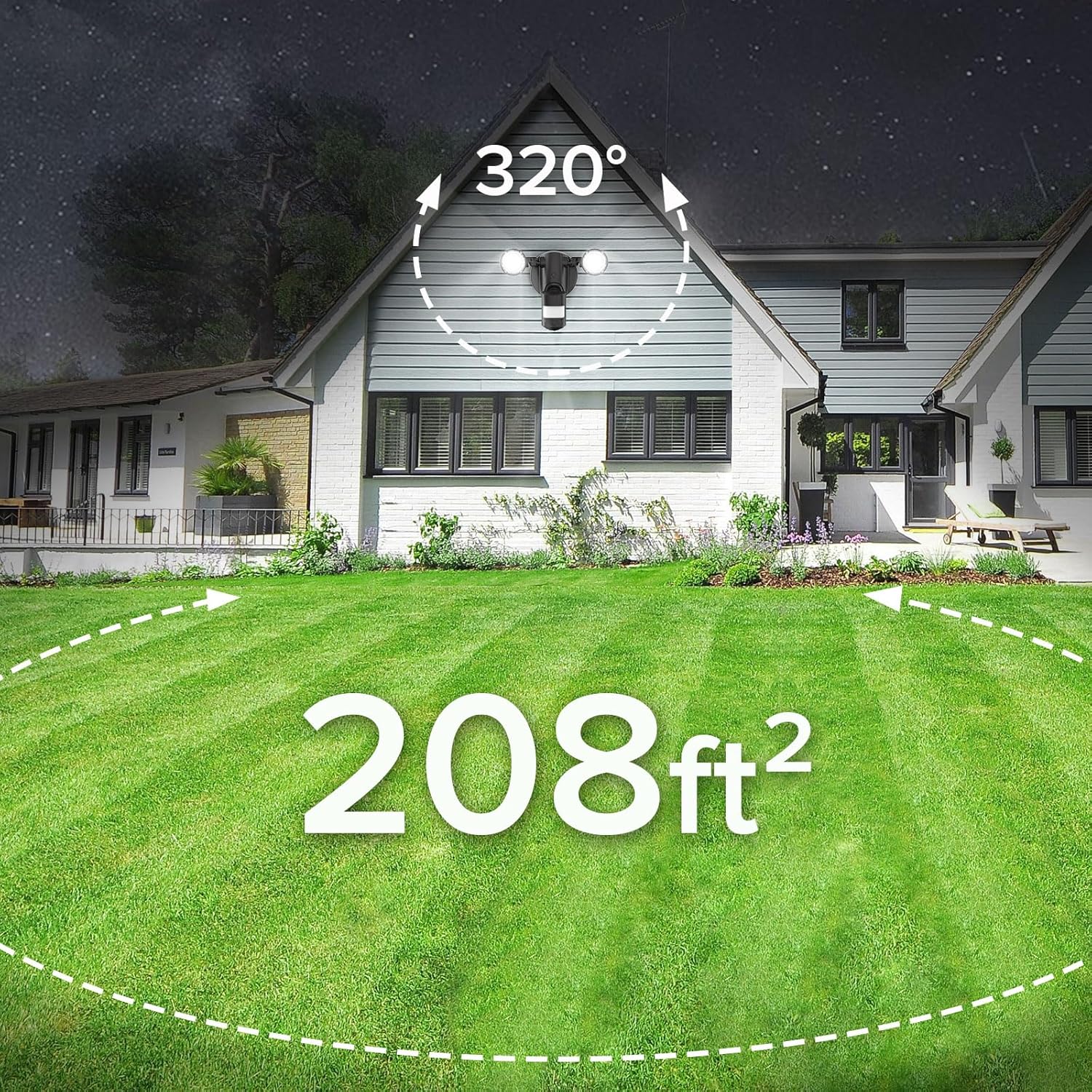 Motion Sensor: motion security light can be triggered by moving human, cars and animals up to 72 feet sensing range at 320° detection angle, Lighting time can be adjusted from 10s to 10mins; keep your home secure 24/7. This outdoor motion security light can be installed for soffit/eave mounting or wall mounting by following a few wiring steps. Good lighting solution for dark areas like middle sized backyard, front door, garage, driveway, sidewalk,etc.