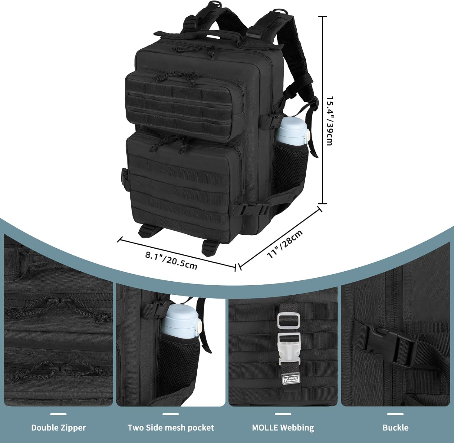 Be the first to review “Small 25L Tactical Black Backpack for Men and Women,Military Backpacks Rucksack with Molle Webbing Daypack Bug Out Bag Outdoor With Bottle Holder For Short Trip”