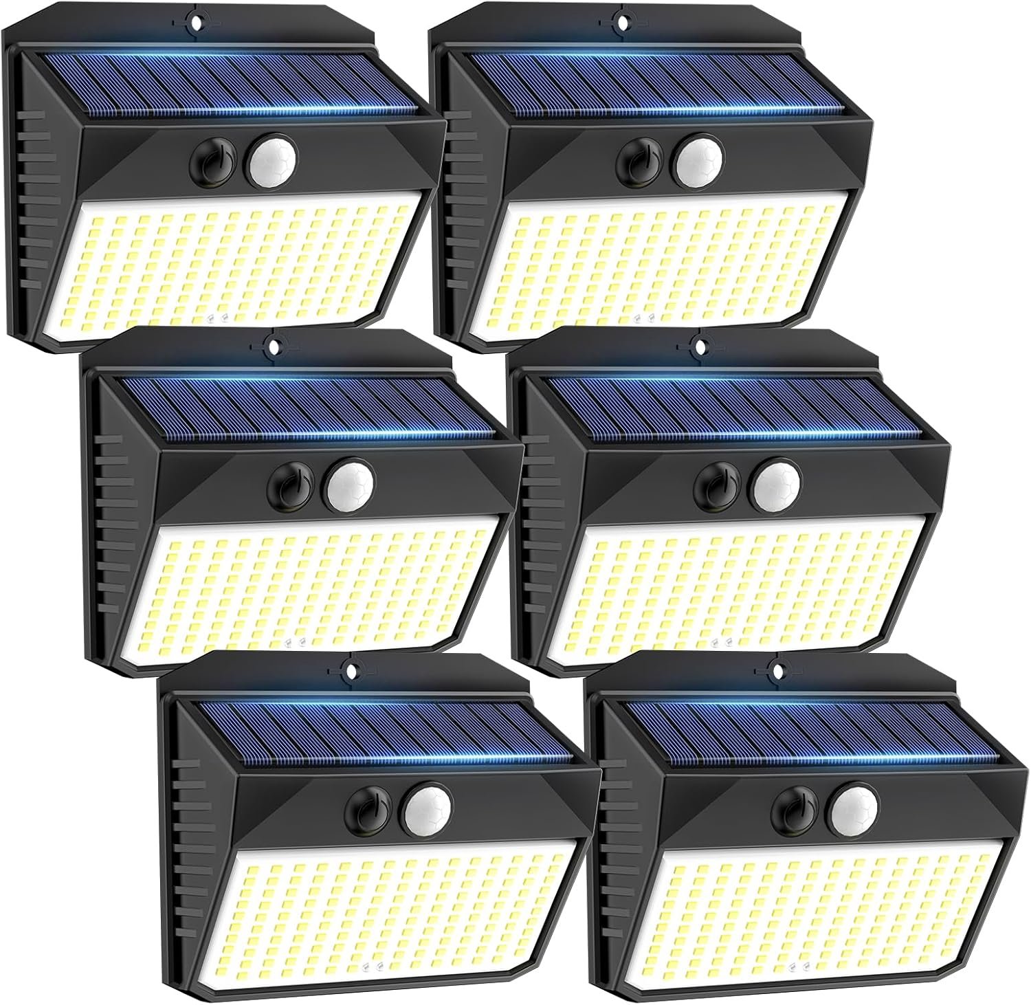 🥇6 PCS Solar Lights Outdoor🥇 These solar outdoor lights are jointly controlled by a sensitive light sensor system and a motion sensor system for true smart control, providing you with more convenience. The outdoor solar lamp is equipped with 150 high-quality LED lamp beads, which can produce high-brightness light. The lighting angle of the solar lights is 180°, and the lighting area can reach 322 square feet.