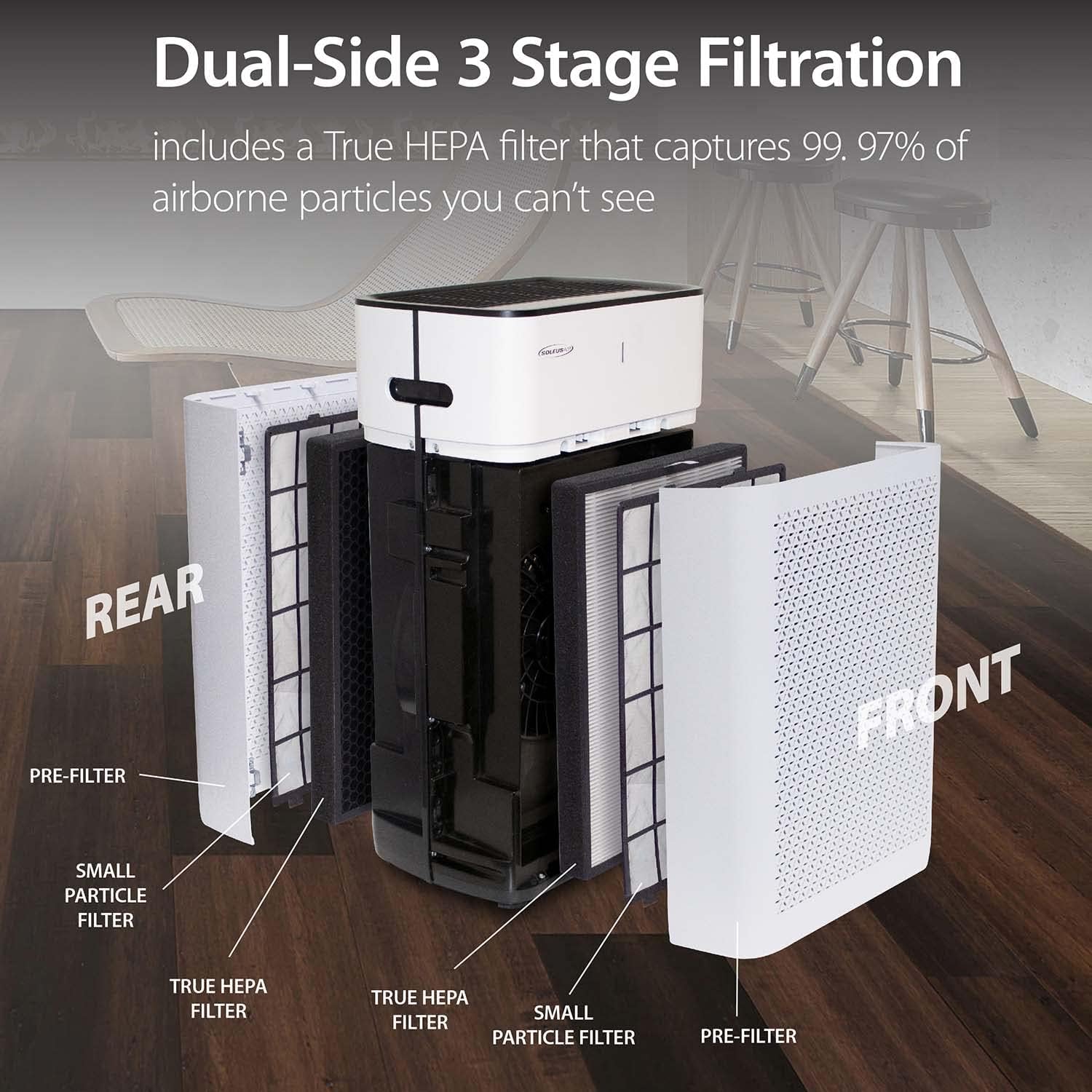[Dual Carbon Filters] The Soleus Air Exclusive Large Room Air Purifier goes a step further by featuring two carbon filters that effectively neutralize odors. Enjoy fresh, odor-free air throughout your space.