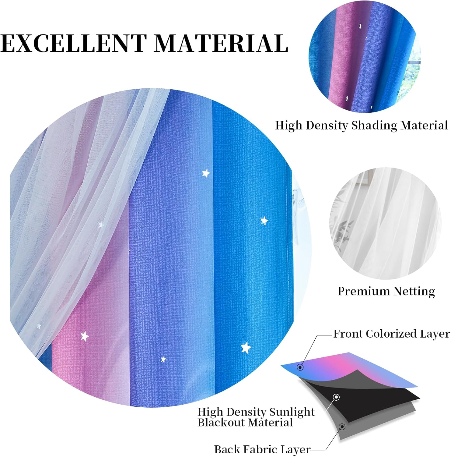 Loyala Star Rainbow Blackout Curtains with overlay tulle