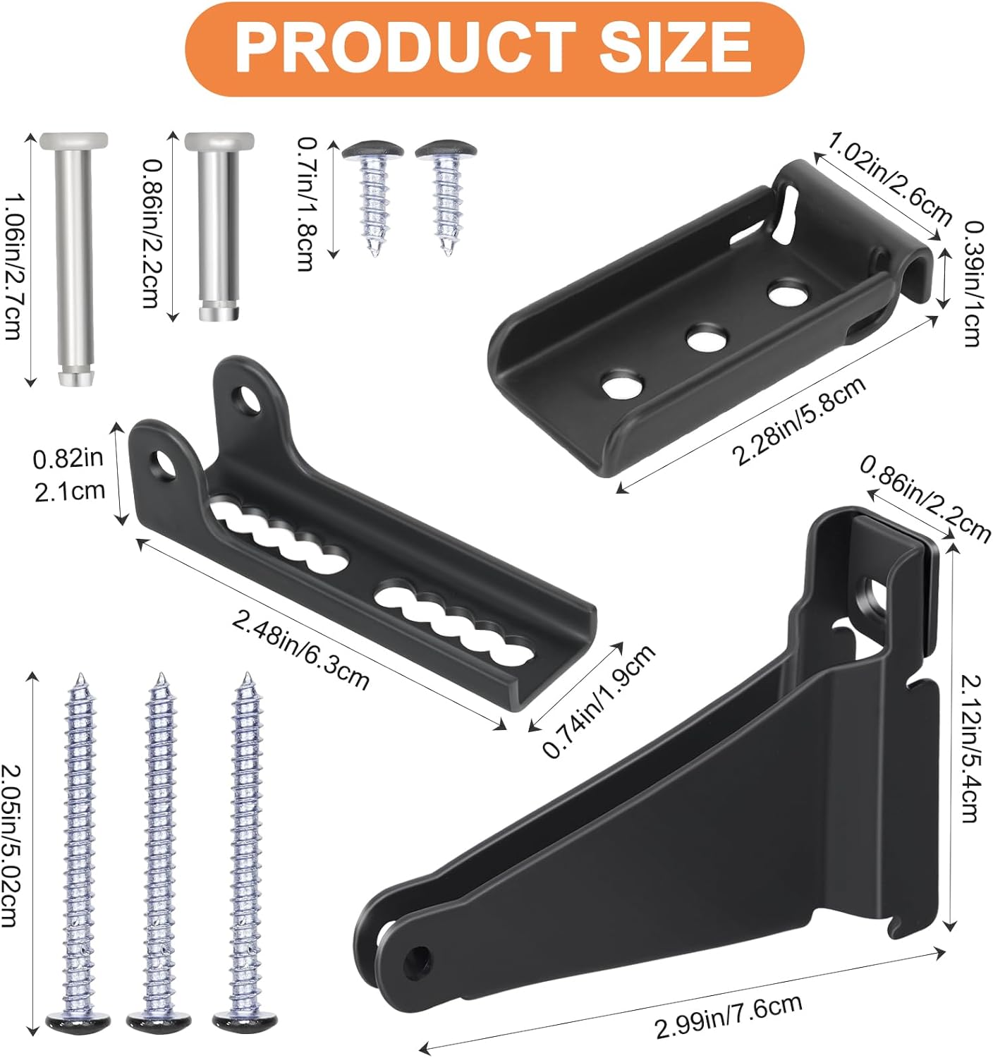 PACKAGE INCLUDED: Sartatue storm door closer bracket comes with a set of storm door replacement parts, including 1 door bracket, 1 jamb bracket base, 1 jamb bracket, 2 short screws, 3 long screws and 2 replacement pins. This combination will meet your needs.