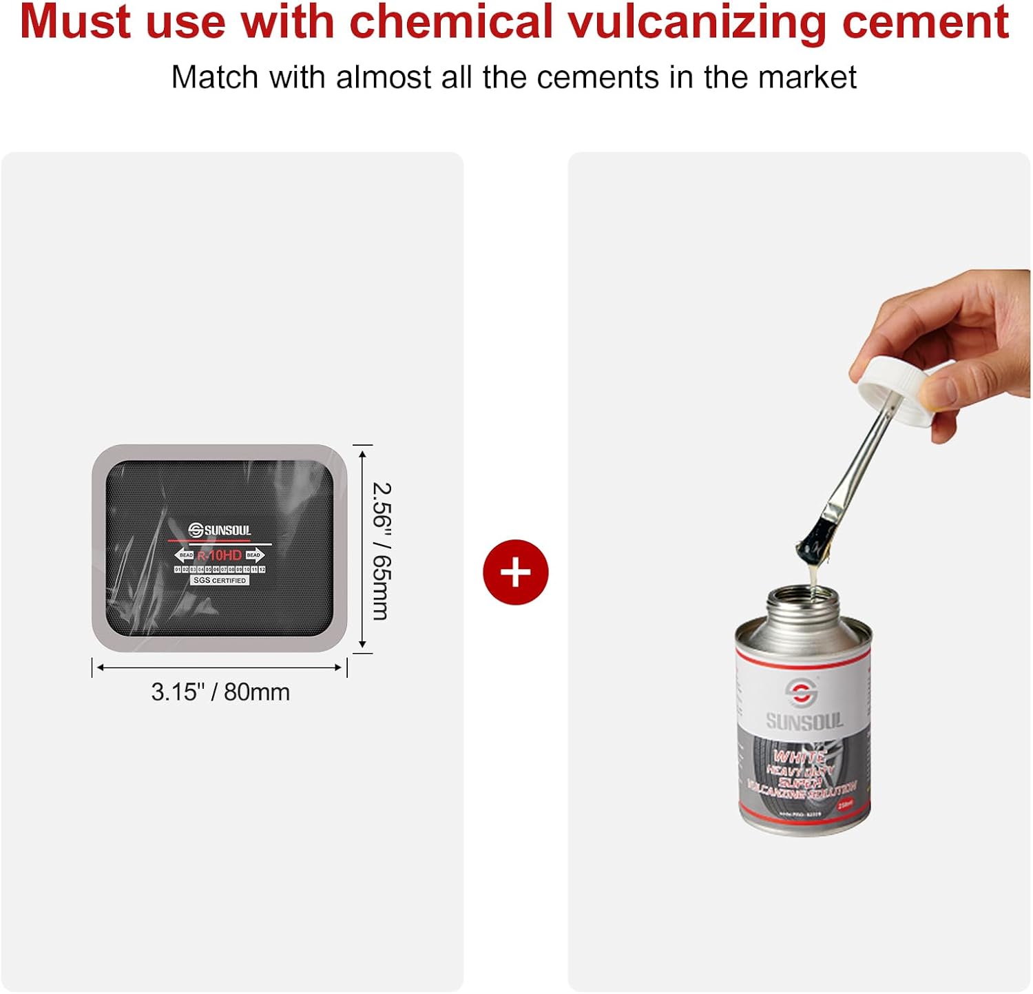 Pls noted:Our patches must use with chemical vulcanizing cement,otherwise it can’t hold on the tire inner surface.Our patches can fit for mostly famous brand of fluid or cement solutions in the market.