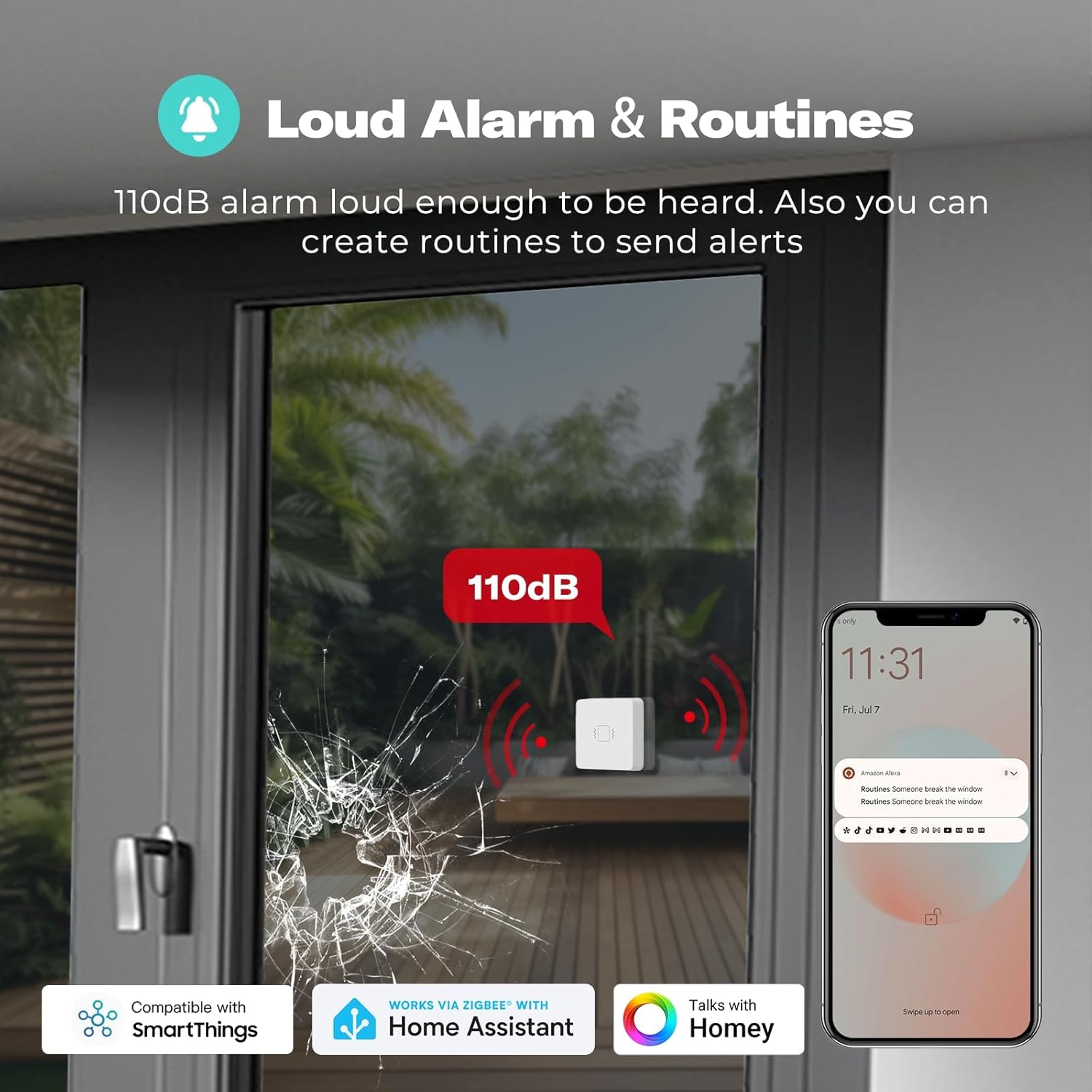 Routine Creation: Enables the setup of smart routines when paired with a compatible Zigbee hub, enhancing your smart home experience with automated alerts and notifications. From sending alerts if a window breaks or notifying you when appliances like washing machines or dryers have stopped running. This can contribute to a more efficient and responsive smart home.