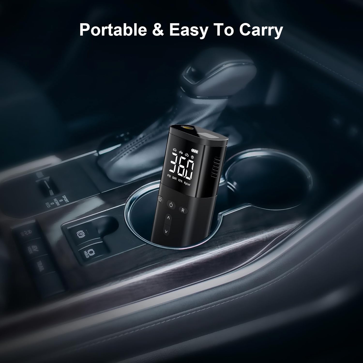 Compact & Efficient Portable Tire Pump: This mini air compressor for car tires is compact enough to fit in your car, offering a quick and easy solution for tire inflation. The lightweight design ensures that you always have this essential tool ready for emergencies or routine tire maintenance