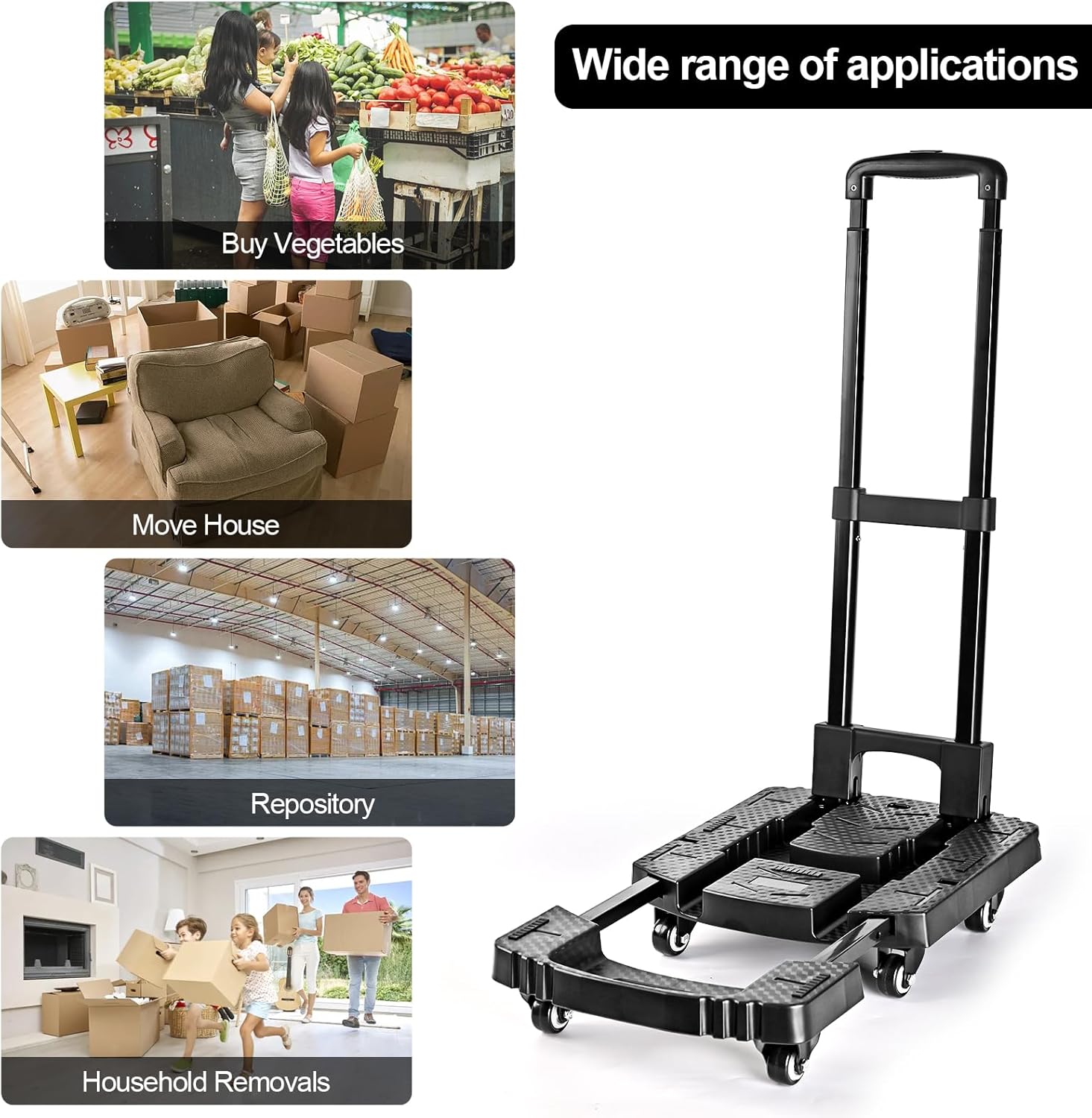 [Simple and Efficient] You’ll receive our pre-assembled cart, ready to use in just 5 seconds out of the box. You can also adjust the platform size and handle length to suit your needs