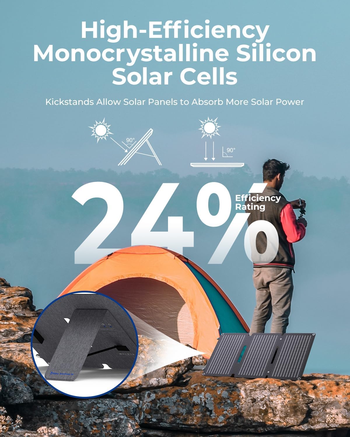 SolarPowa 30 ETFE Solar Charger combines industry-leading solar panel manufacturing technology with ergonomics design to optimize your satisfaction. USB-A and USB-C can charge fast iPad, Switch, iPhone, Android cellphones, power bank, etc. The DC output is compatible with some mini power stations.Portable and folding design, BigBlue 30W solar panels charger is a great option if you’re taking an extended camping trip or if you’re traveling somewhere with an unreliable power grid.