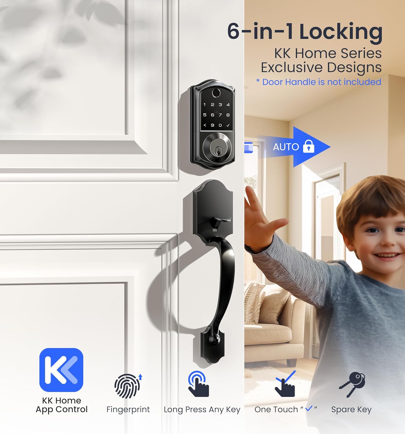 Newly Upgraded KK Home App: Supports voice announcements in English, Spanish, and French; Battery check via KK Home App; Low battery alerts and USB-C emergency charging prevents battery drain; Safe Mode and Anti-Peep function for added security; plus an LED backlit touchpad for easy use in low light