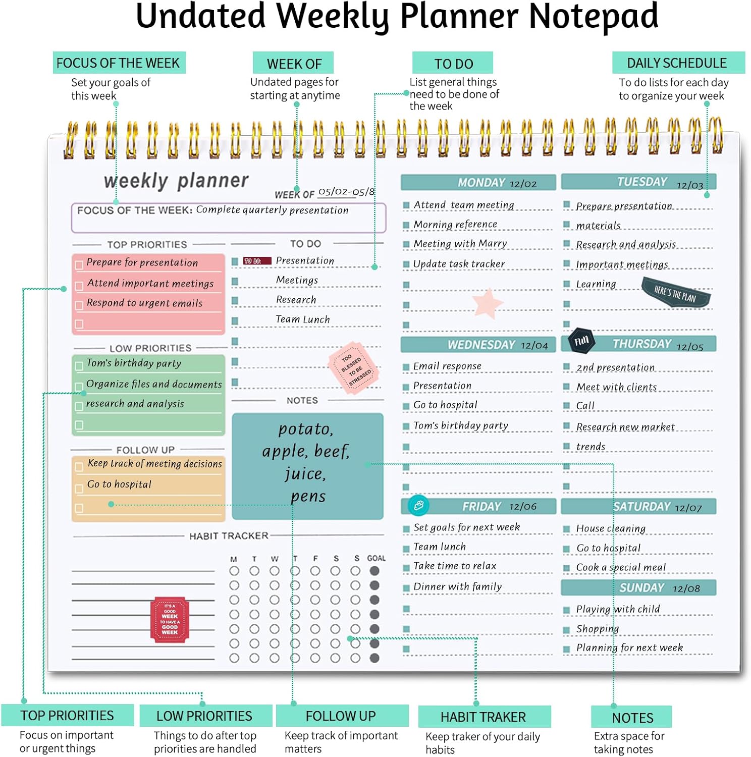 【Undated Weekly Planner】The undated weekly planner allows you to plan your life freely without wasting space or skipping dates. You can start your planning journey at any time