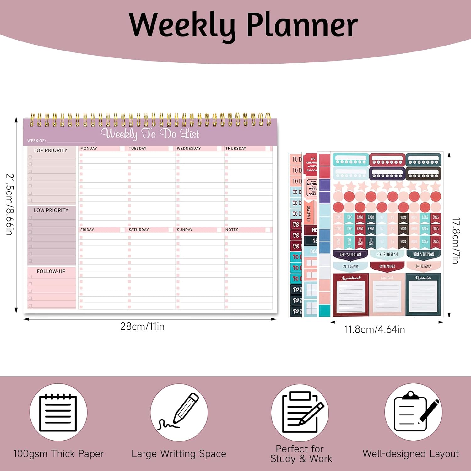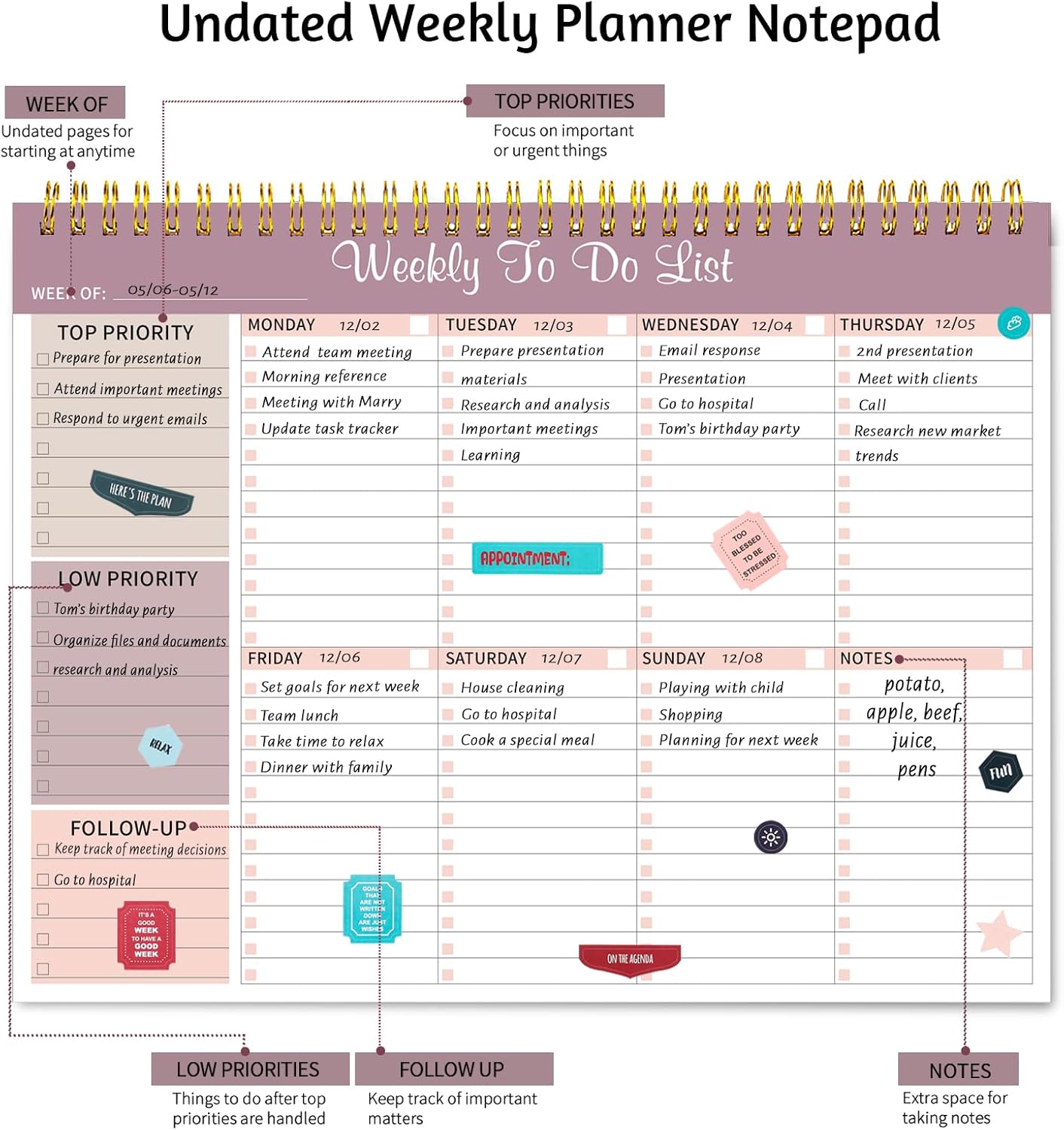 【Undated Weekly Planner】The undated weekly planner allows you to plan your life freely without wasting space or skipping dates. You can start your planning journey at any time