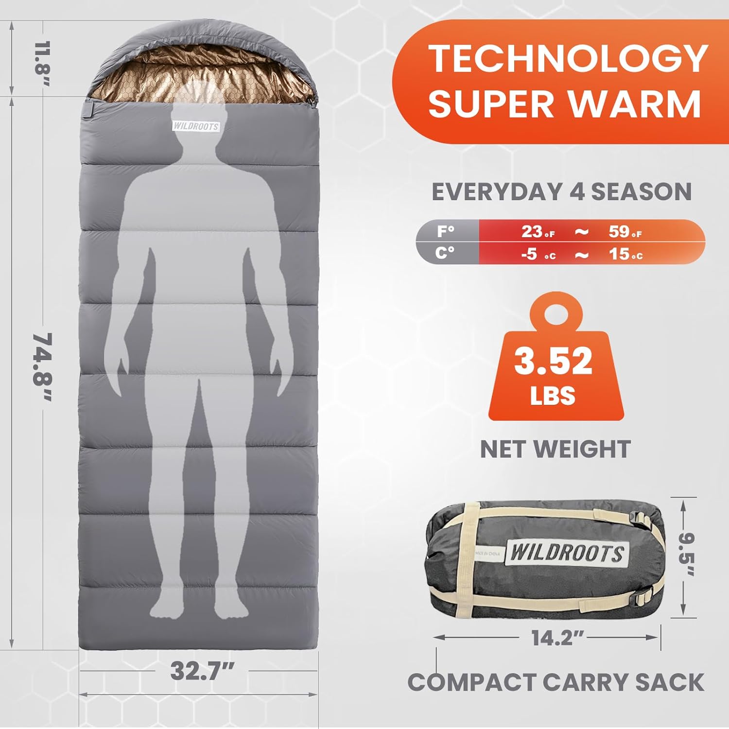 Be the first to review “WILDROOTS Warm Sleeping Bags for Adults, Backpacking Lightweight, Cold Weather Sleeping Bag for Warm Camping Hiking Outdoor, Travel Hunting with Compression Bags”