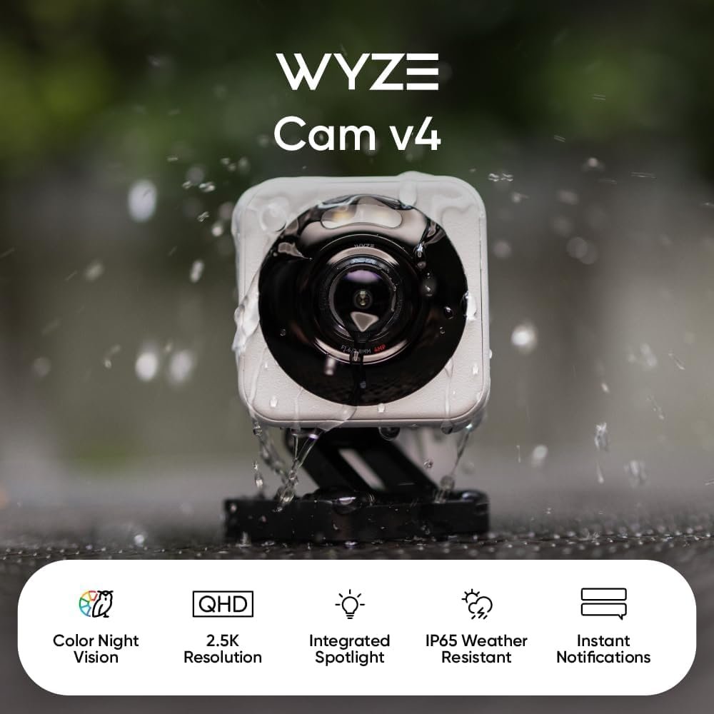 Experience unmatched home security with the Wyze Cam v4. Its 2.5K QHD resolution delivers crystal-clear images, day or night, thanks to Enhanced Color Night Vision. Motion-activated spotlight and voice warning features enhance security, while 24/7 local recording ensures no moment goes unnoticed. Easy installation, Bluetooth setup, and smart features like facial recognition and person detection make monitoring effortless. With Wi-Fi 6 support and integration with Alexa and Google Assistant, the Wyze Cam v4 offers reliable, convenient protection for your home.