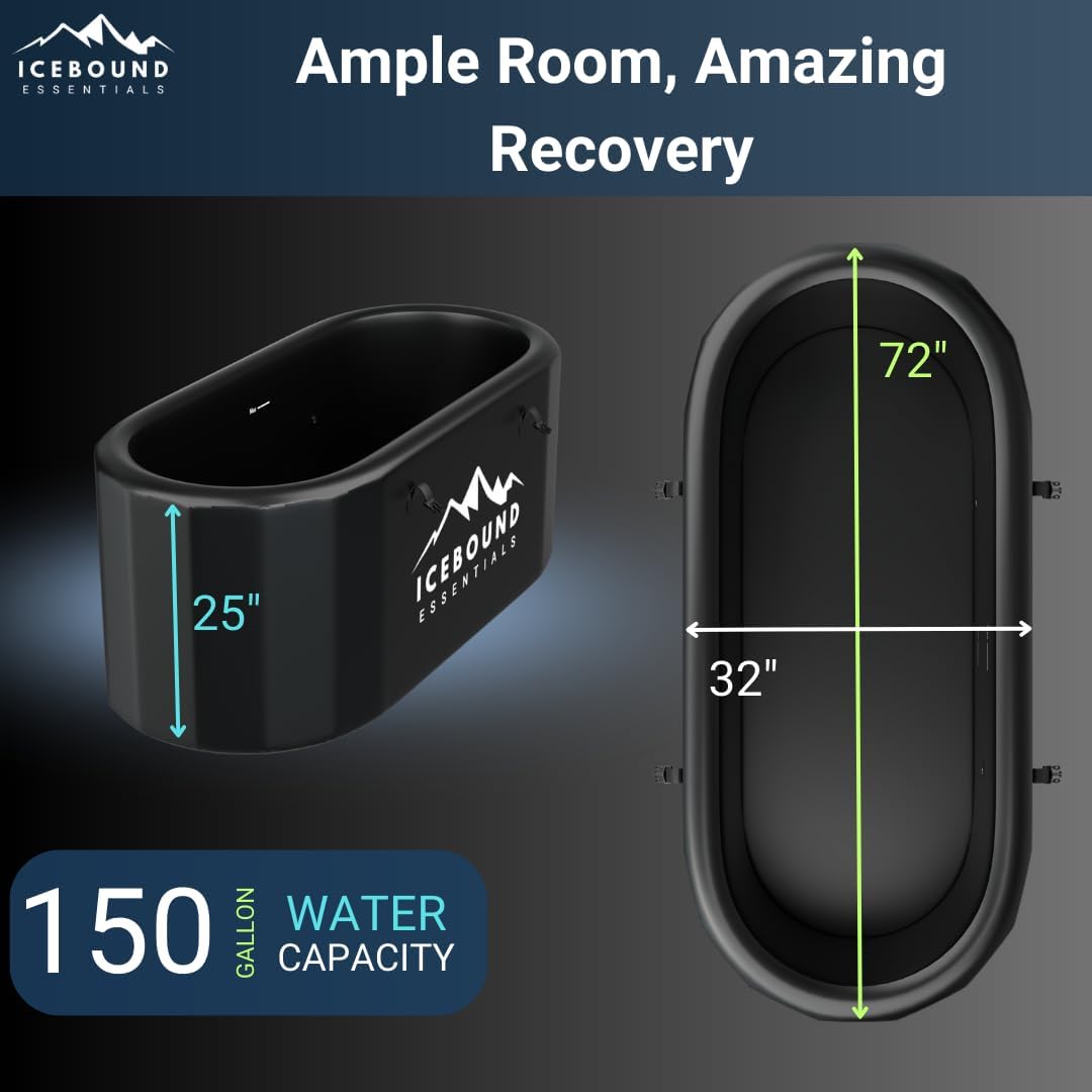 XL Size Full-Body Immersion: With its spacious 150 gallon max capacity, this XL ice plunge tub accommodates even the tallest plungers, allowing for complete body submersion. Over 6’4”? No problem. Looking to plunge with a buddy? You can do that too.