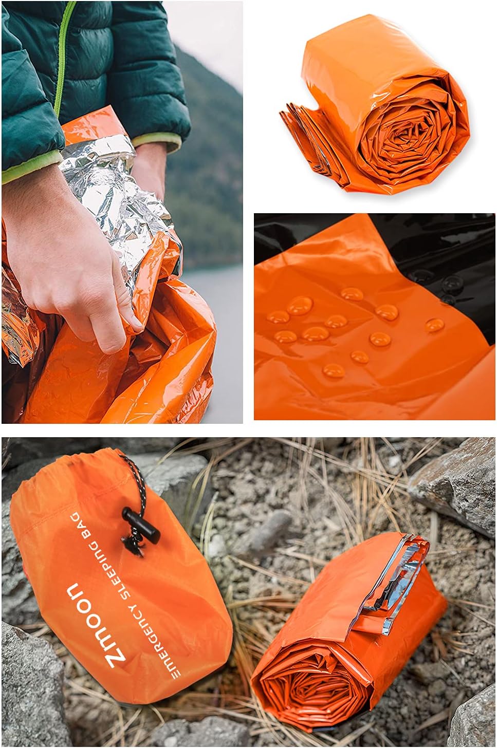 【OUTDOOR ESSENTIALS】Just pull out of the stuff sack.Emergency sleeping bag can be used as a sleeping bag line. Zmoon emergency bags in your hiking pack, go bag, bug out supplies, and glove box so whether you’re trapped in your car during a winter storm or forced to spend an unplanned night outside, you’re ready for the harshest conditions Mother Nature throws at you. A must-have tent camping gear when camping, hiking,trail running.