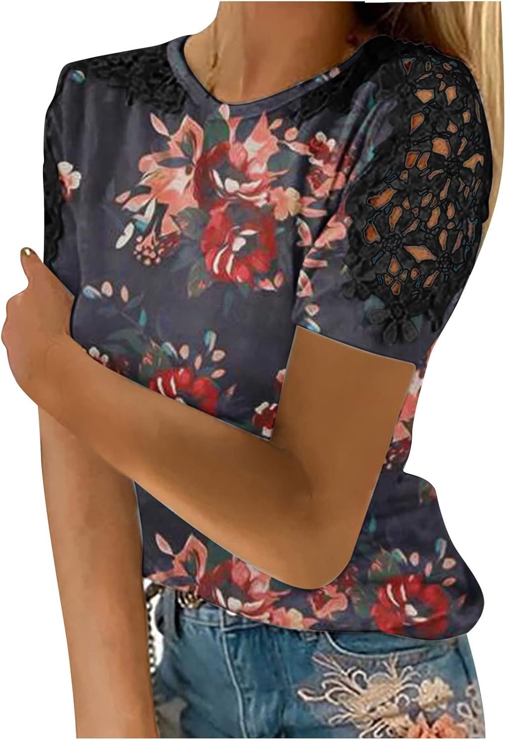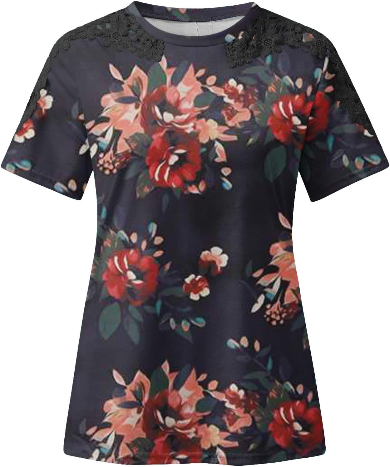 Girls Gradient Floral Tops Boat Neck Blouses for Girls Lace Eyelet Brief Sleeve Summer time Fall Shirts 2024